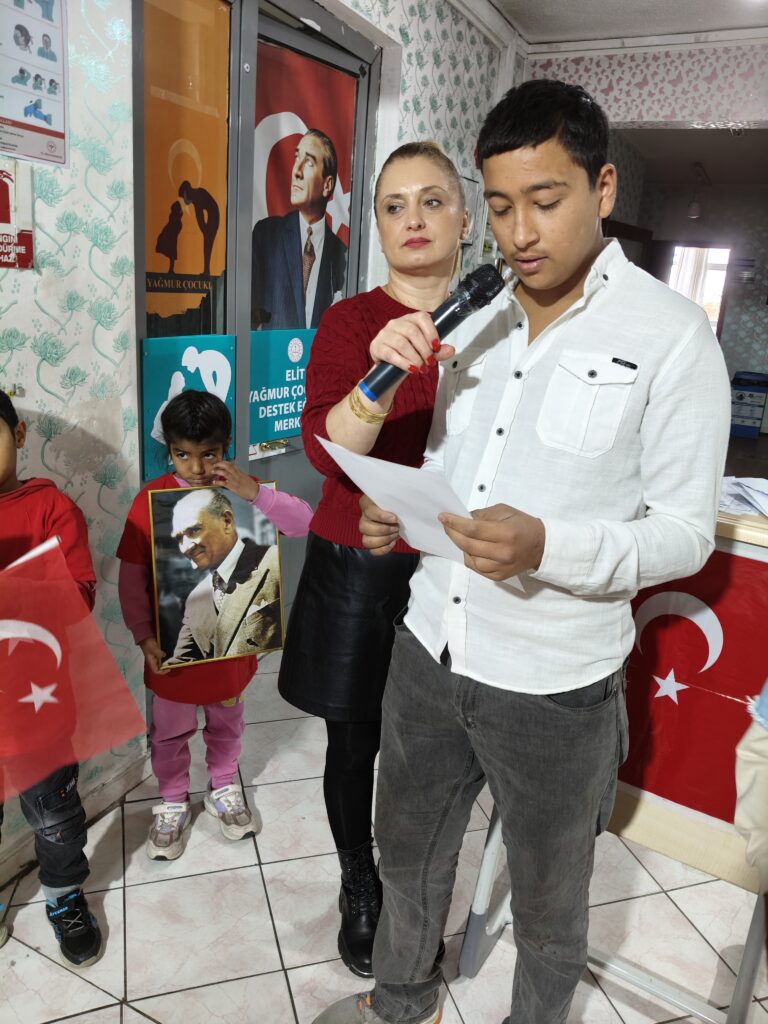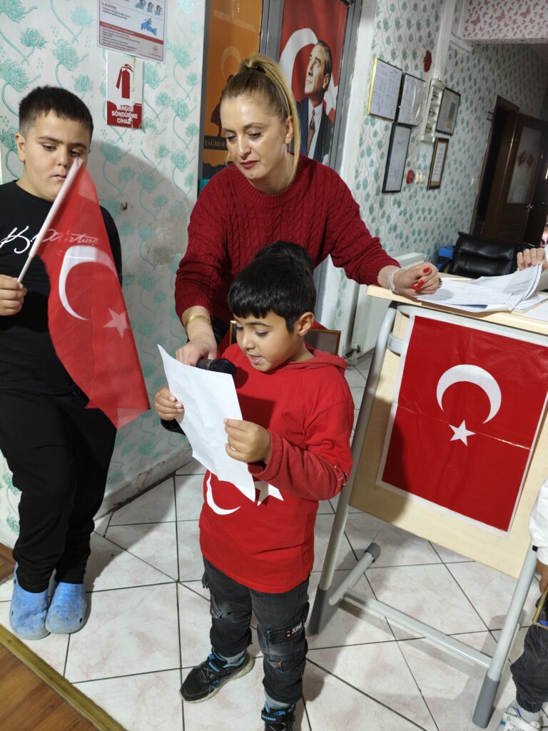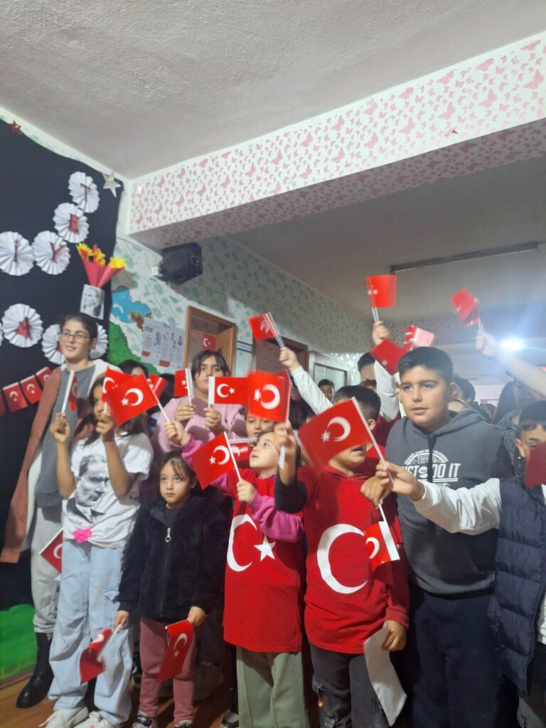 Elit Yağmur Çocuklar ailesi olarak 102. yılında Cumhuriyet Bayramımızı gururla ve coşkuyla kutladık. Saygı duruşu ve İstiklal Marşı ile başlayan kutlamalarımızda Atatürk’e olan bağlılığımızı ifade eden şiirler okundu. Kurum öğretmenleri CUMHURİYETE NASIL KAVUŞTUK? gösterisi sundular. Arkadaşlarımızın hazırladıkları pano öğrencilerimiz tarafından ilgi ile izlendi.